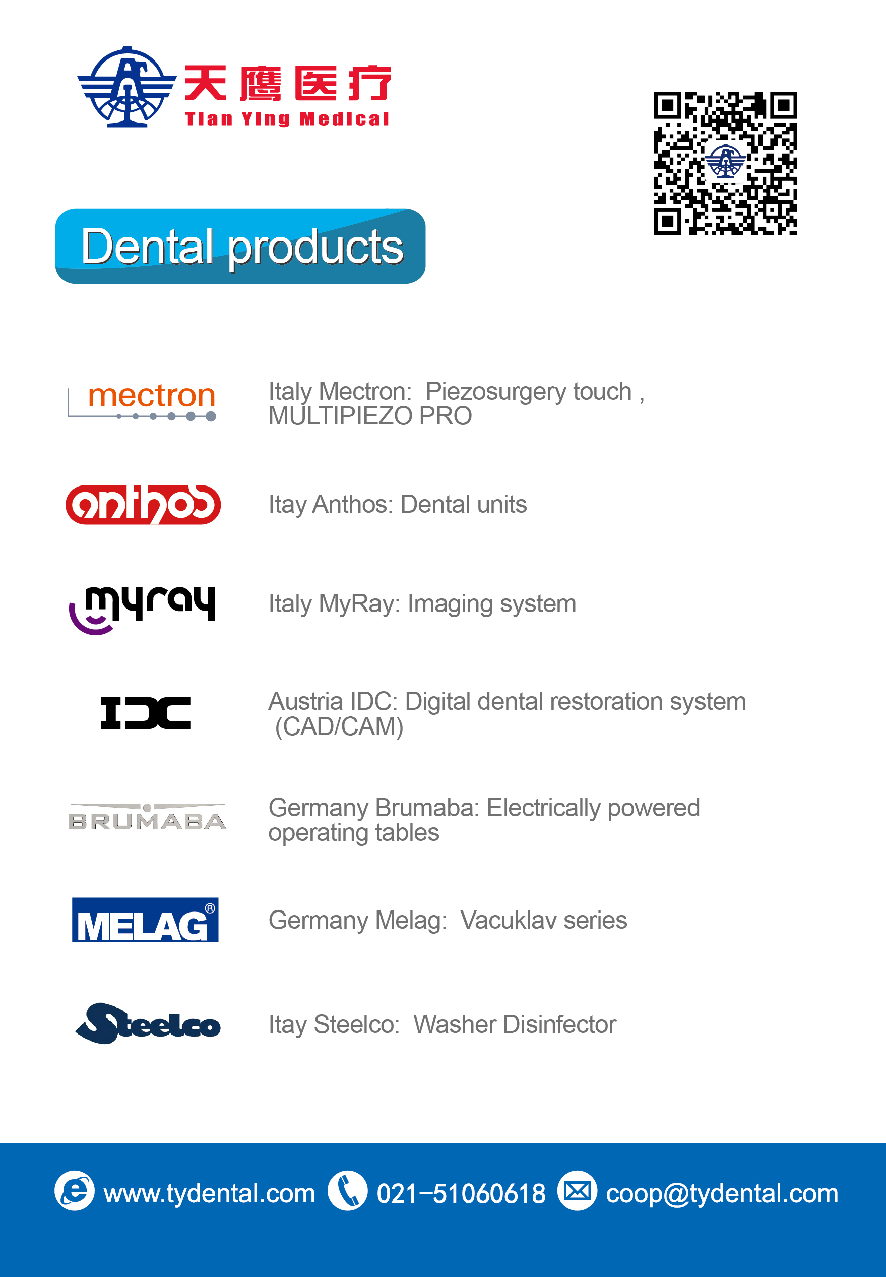 Founded in 1992, with the distributing dental equipment and devices as the basis,with the R&D and production of minimally invasive and digital dental equipment as main business, with the professional systemic training and service as the pillar,Tian Ying Medical sales and service network covers more than 50 domestic and overseas countries and regions.